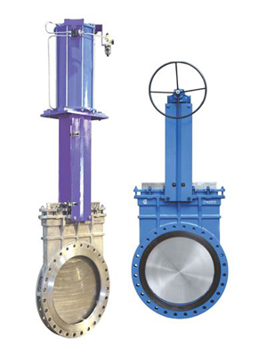 Knife Gate Valves are ideal to cut through thick flow media like slurry, pulp and powders over a wide range of sizes. Knife Gate Valves are available in rising or non-rising stem with multiple actuation options like hand wheel, chain wheel, bevel gear box, pneumatic cylinder and electrical motorized actuator.